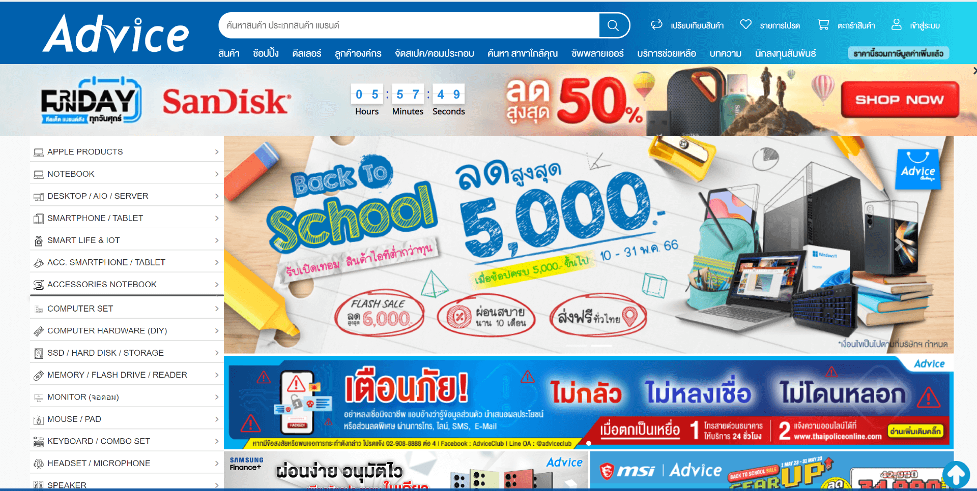 Advice是智能设备、IT单子设备的零销商,在泰国和老挝共拥有350多家分支机构,可以为个人、政府组织、私企等提供服务。
